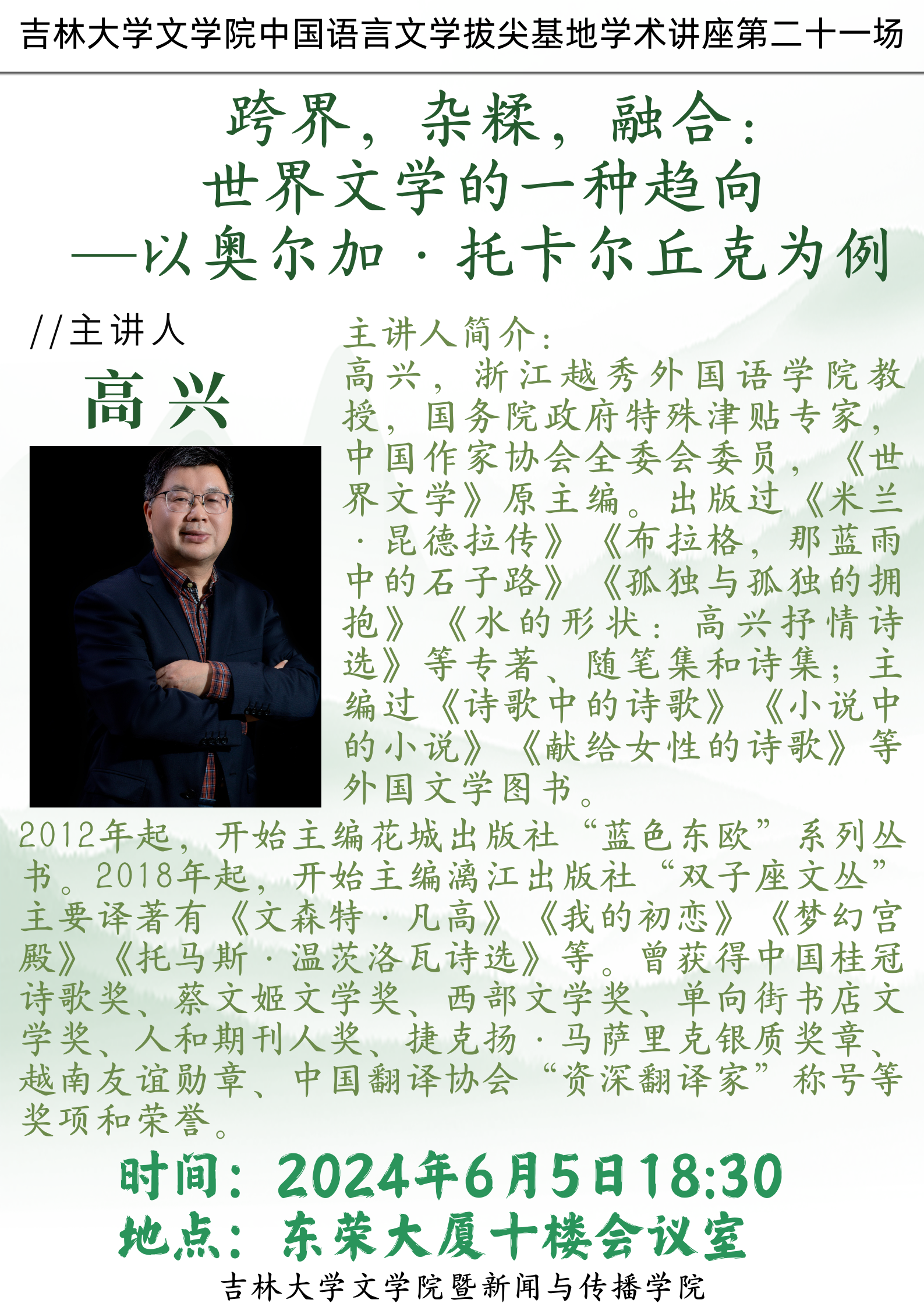 讲座题目:跨界,杂糅,融合:世界文学的一种趋向———以奥尔加·托卡尔丘克为例