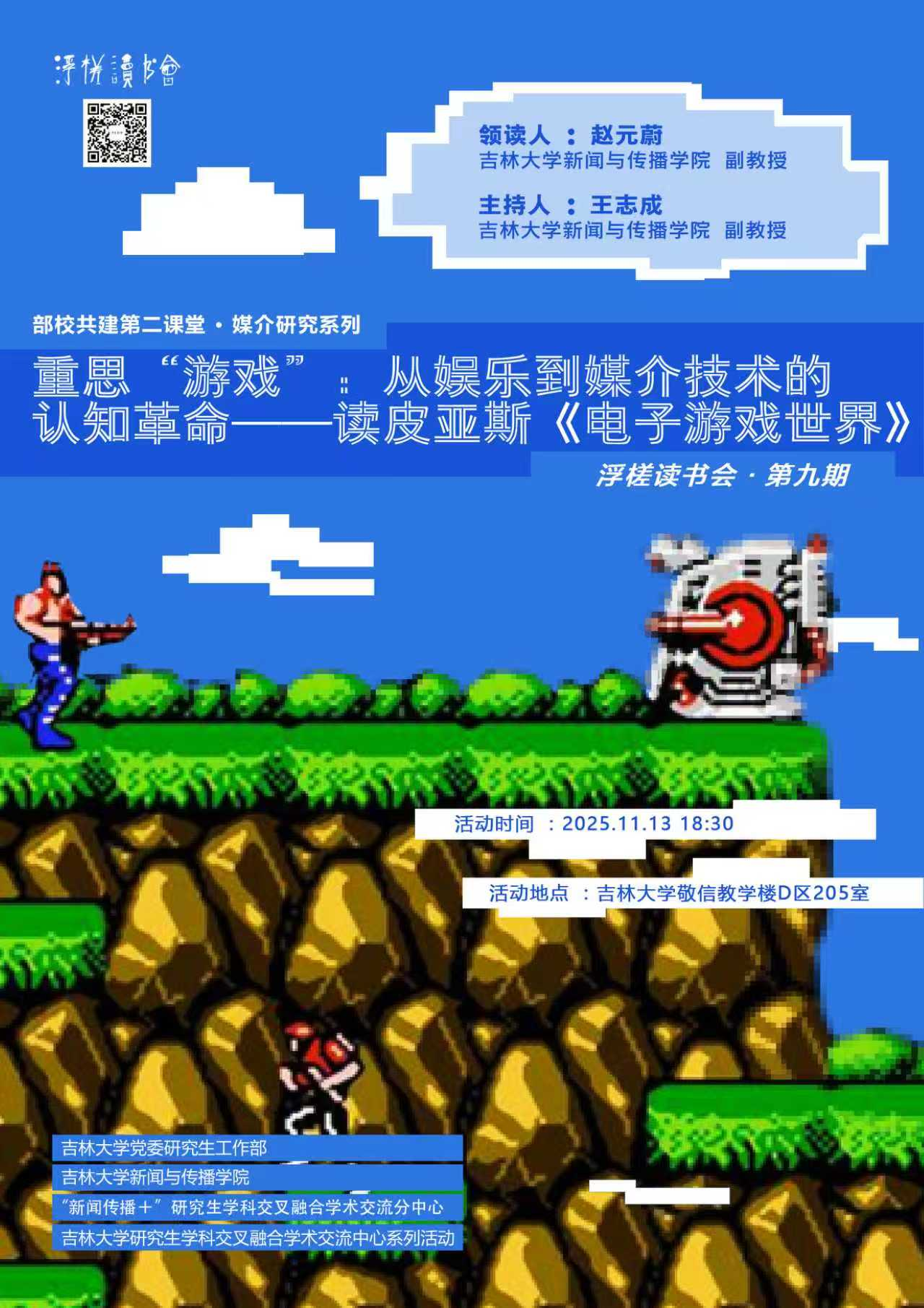 新闻与传播学院传播学系赵元蔚副教授做“重思‘游戏’:从娱乐到媒介技术的认知革命——读皮亚斯《电子游戏世界》”专场主题研讨活动。具体通知内容如下:
