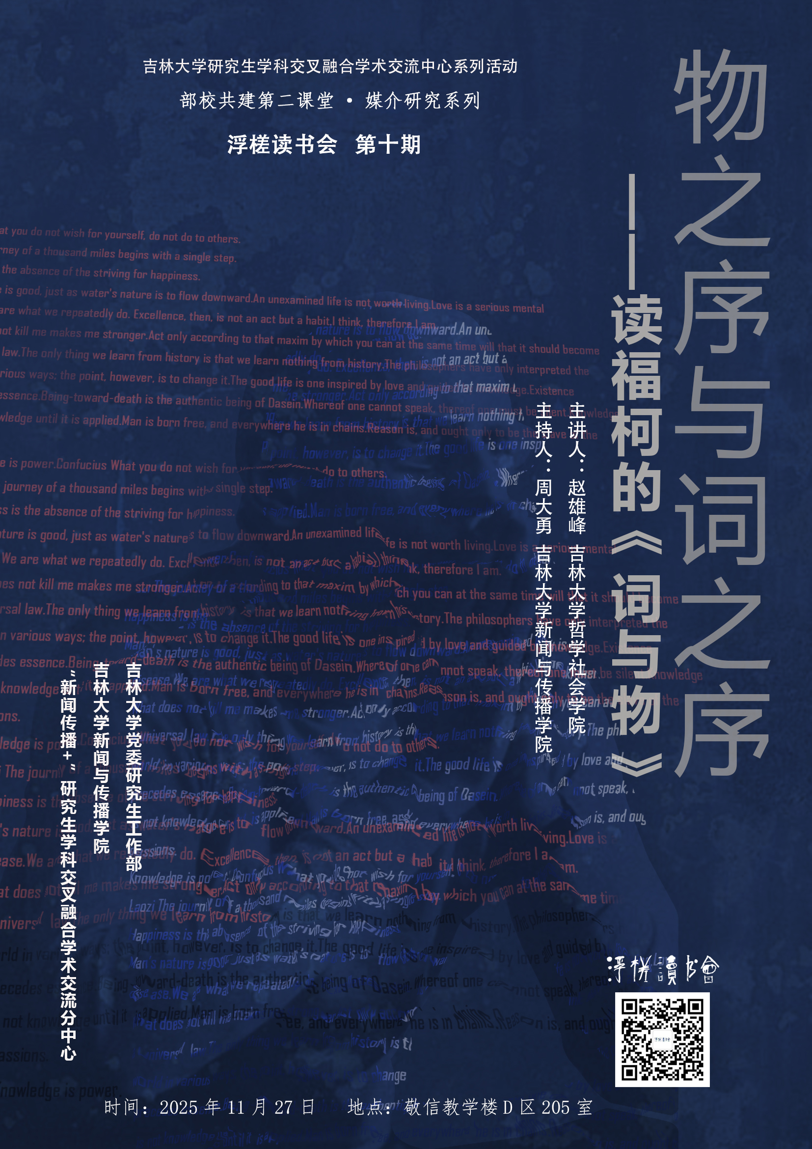 哲学社会学院赵雄峰副教授做“物之序与词之序——读福柯的《词与物》”专场主题研讨活动。具体通知内容如下: