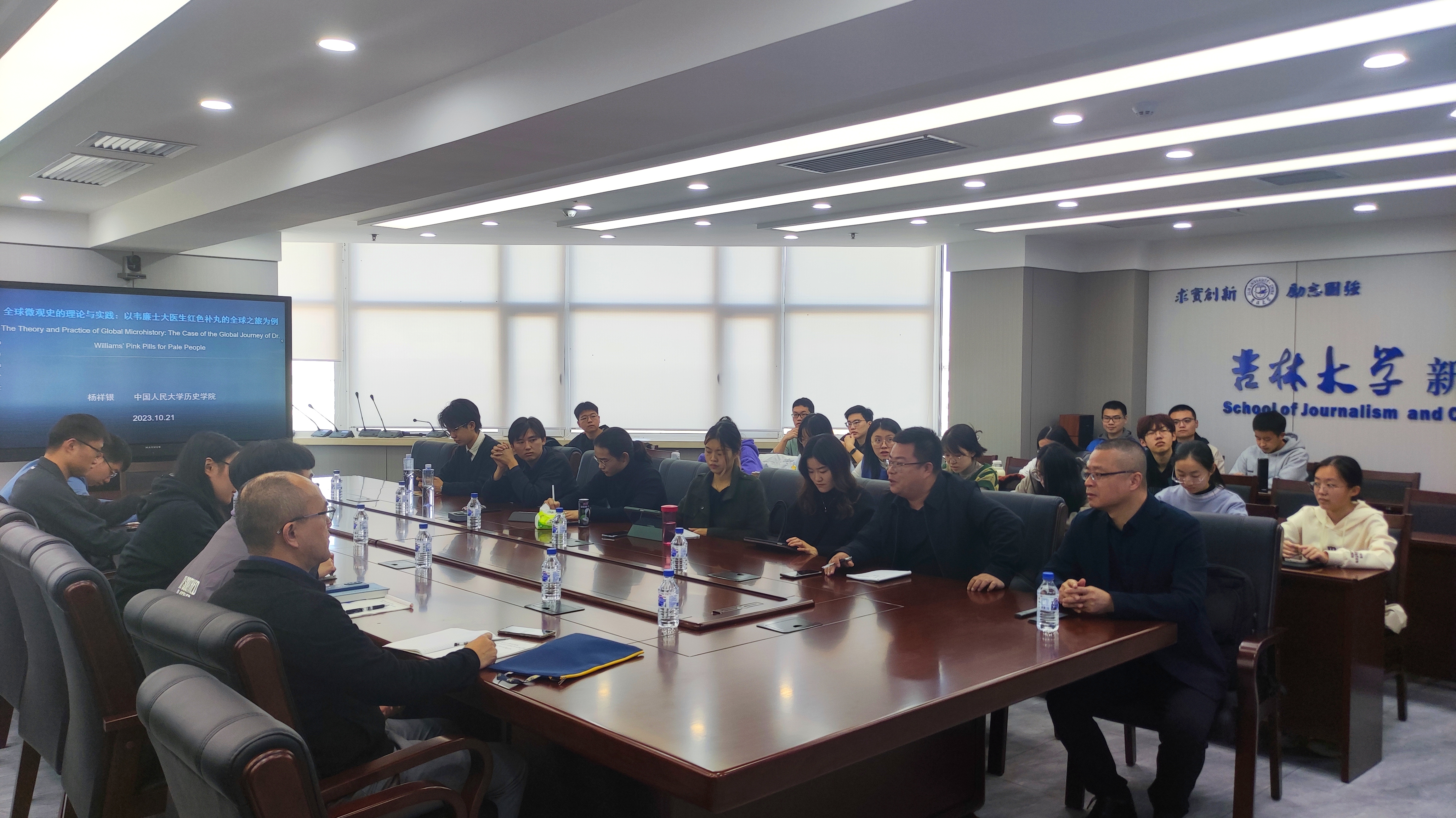历史研究院学术讲座”2023年第4讲在东荣大厦十楼举行,中国人民大学历史学院教授杨祥银老师进行了题为“全球微观史的理论与实践:以韦廉士大医生红色补丸的全球之旅为例”的学术讲座,中国史系副主任贾小壮老师主持讲座,系主任蒋金玲老师,以及徐萍、王万志老师参加会议。