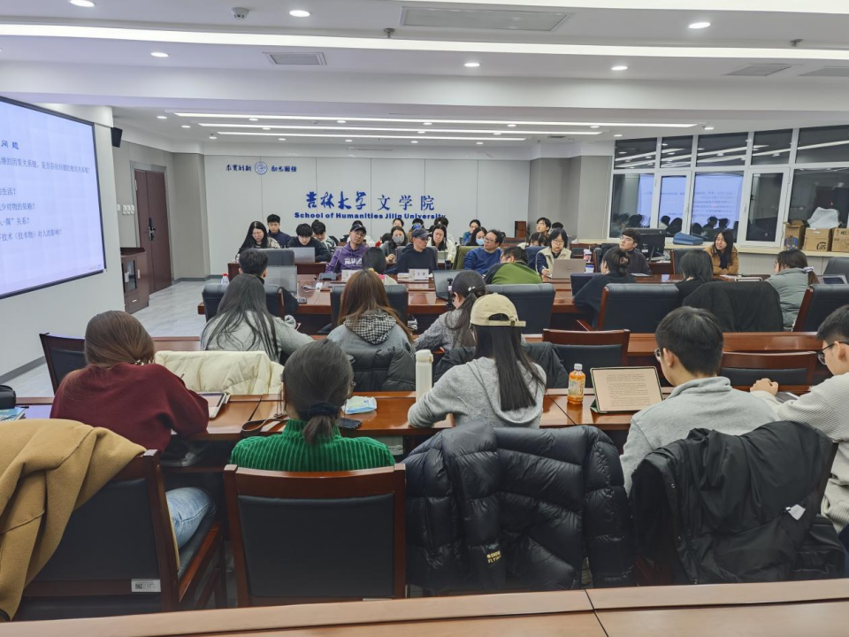 同学们也就自己对书中相关问题的不同理解积极展开讨论。24级研究生于蕙宁对王博学副教授的观点表示赞同,认为伊恩·霍德对人与物的观点与人本主义地理学家段义孚的在《制造宠物》中对人与物的观点是有所共通的,涉及到人对物的支配,将人使用物视作是一种驯服;24级博士生徐拂洋将人与物的关系与技术哲学的“物的转向”相结合,提出自己的看法;22级本科生黄贤则做出了一个有趣的假设:倘若有一个主权者高悬其上,可以监管人们对于物的欲望,那人与物的纠缠是否能减少或变得可控?22级博士生王少群则基于师生对该假设的讨论提出了进一步问题:老子的无为和薛定谔说“生命以负熵为生”是否有共通之处?24级研究生魏进兰着眼依赖、依附二者词意区别,从两方面的角度对人-物关系做出了辨析。