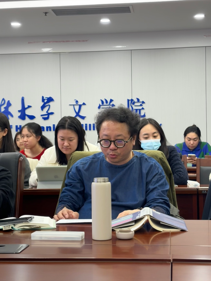 东荣大厦十楼会议室成功举办。新闻与传播学院周大勇教授为主讲人,新闻与传播学院王健副教授为主持人,来自文艺学、新闻学、传播学等专业的博士、硕士研究生和本科生积极参与了本次读书会。