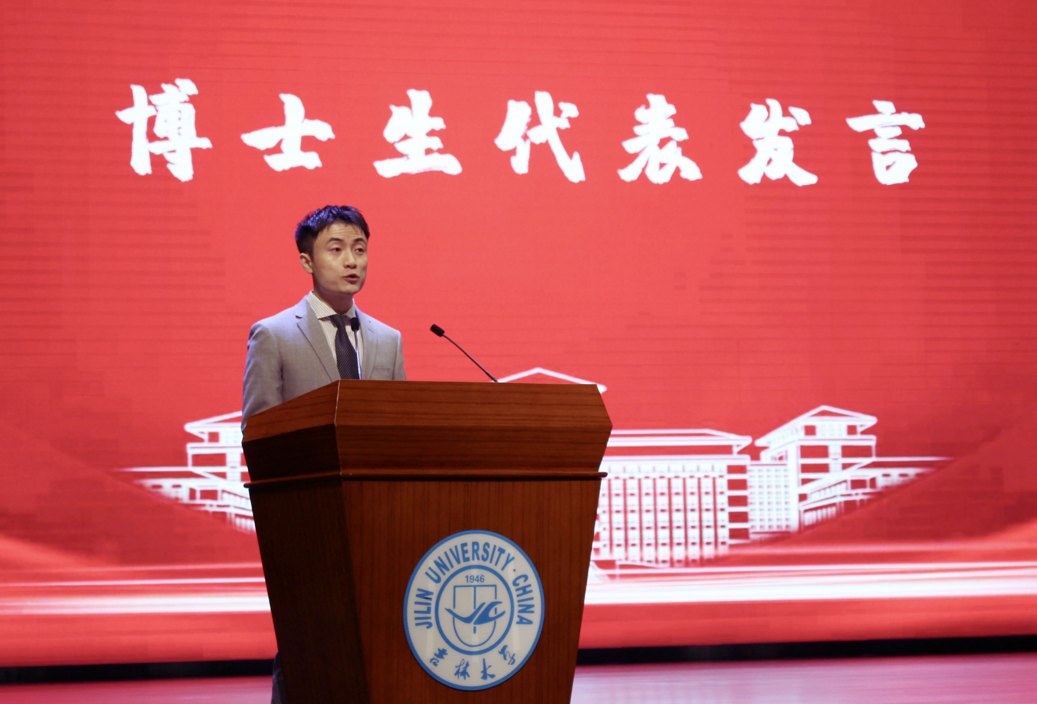 会议第四项,本科新生代表,新闻与传播学院新闻传播学类韩昕桐同学发言。她表示,要牢记吉大的光辉历史,赓续吉大精神,努力学习专业知识,与党和国家同呼吸、共命运,与中华民族伟大复兴齐步伐。