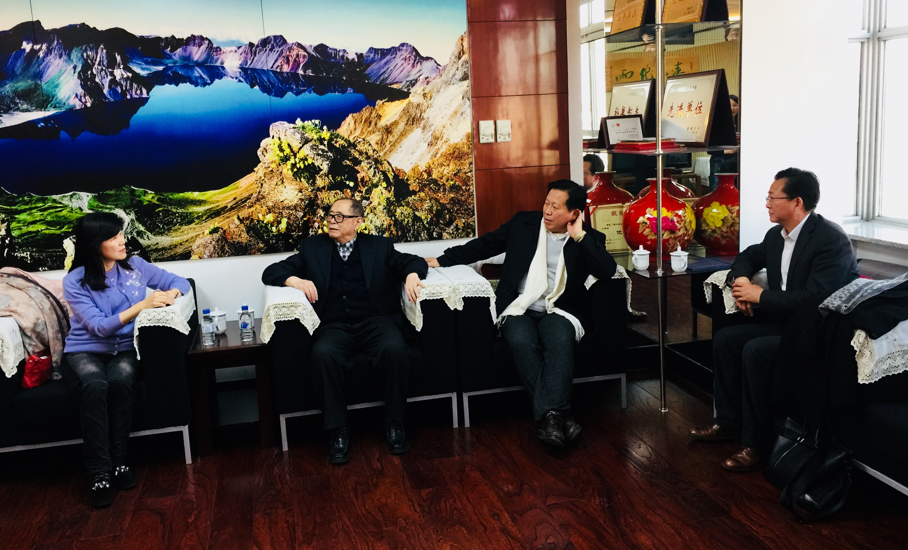 哲学社会科学资深教授刘中树先生、张福贵先生,徐正考院长、康永刚书记、孔朝蓬副院长、张丛皞副院长与来宾进行了会谈。