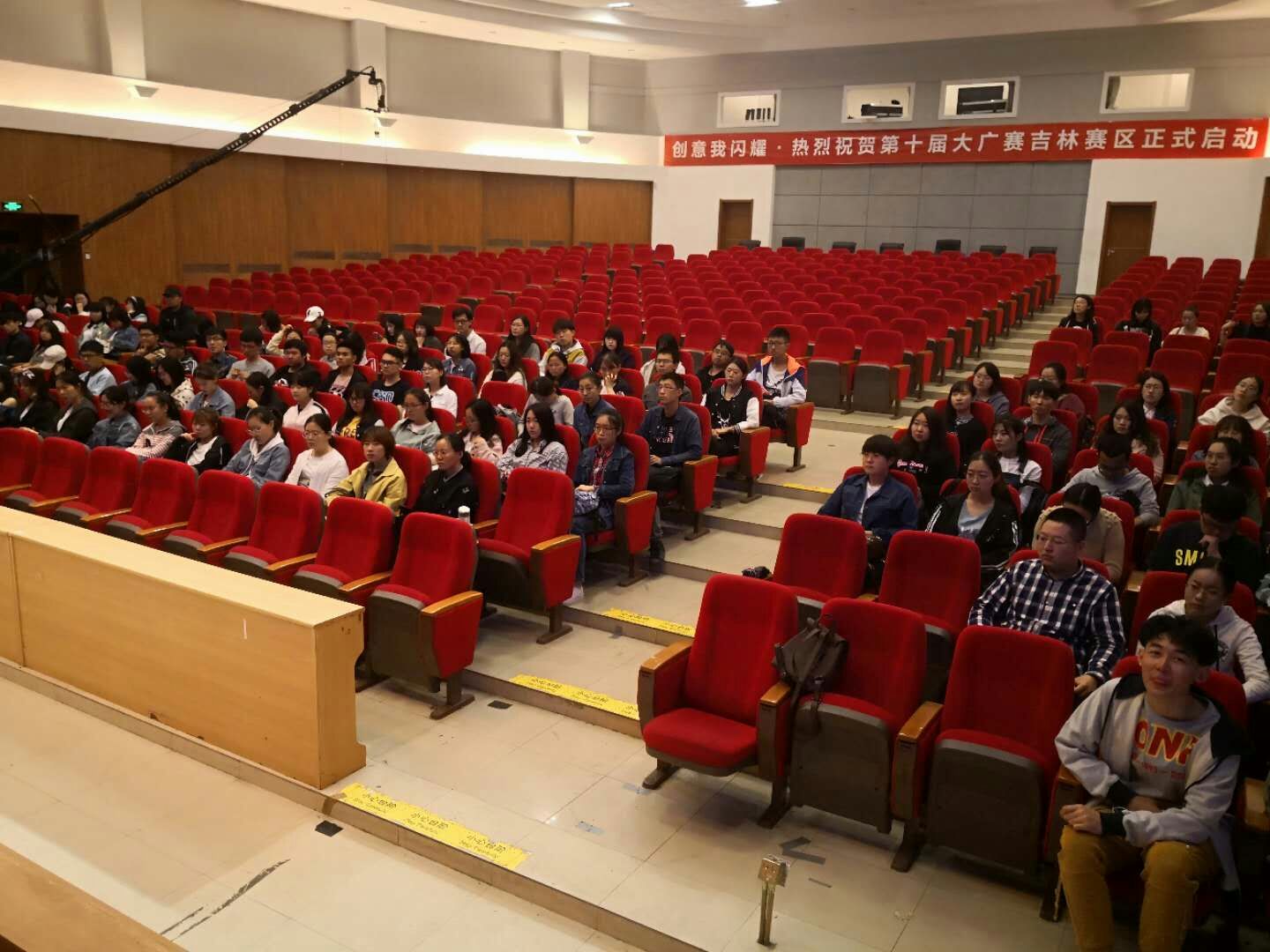 辅导员杨一博老师主持,本科生、研究生共124人到场聆听。
