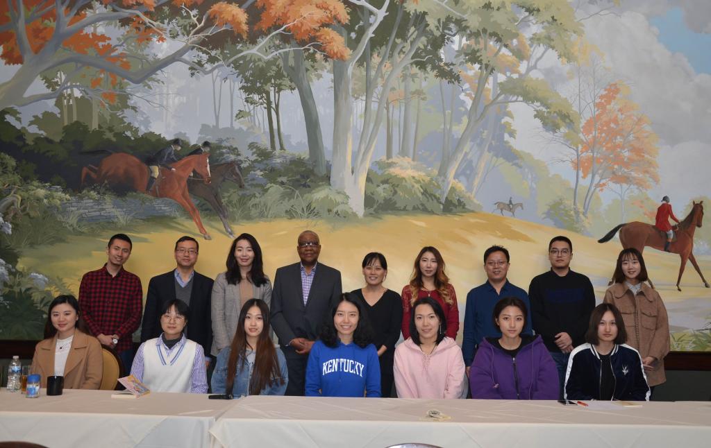 图04:肯塔基大学传播与信息学院整合策略传播系主任希克·安尼耶巴纳曼(Chike Anyaegbunam)教授(后排左四),助理教授、本科项目负责人Hyun Ju Jeong(后排左五)同吉大师生合影。