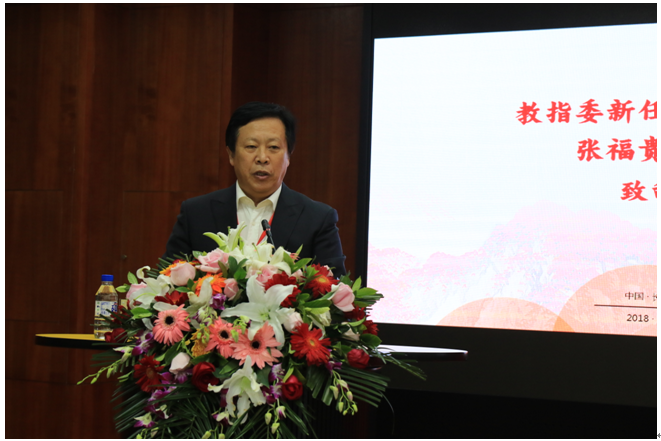 教育部中国语言文学类专业教学指导委员会新任主任委员张福贵在致辞中表示,在国家全面振兴本科生教育的大背景下,作为新一任教学指导委员会主任委员,深感光荣和责任重大。新一届教指委将会全面学习和贯彻习近平总书记在全国教育大会和改革开放纪念大会讲话精神,全面贯彻和落实陈宝生部长在2018—2022年教育部高等学校教学指导委员会成立会议上的讲话中的各项要求,努力把握时代内涵,通过规划和设计本专业的发展思想、改革理念、政策措施、标准技术等,积极和创造性的做好新一届中国语言文学类专业教学指导委员会的各项职能工作,做好拔尖人才培养计划的实施,推动一流专业和一流课程的建设,推进中文专业的立德树人和内涵式发展。并且提出“有事干事,没事找事”的积极工作理念。