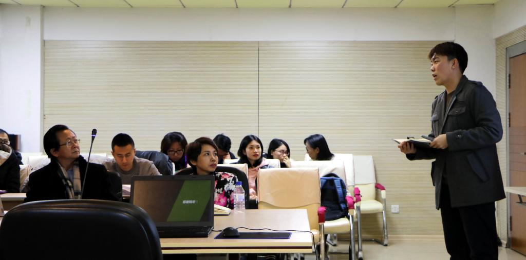 首先进行发言的是来自“中国古文字体验式学术工作坊乌克兰站”项目组的代表博士生孙启灿。该项目负责人是杨一博老师,团队是在徐正考院长、杨一博老师的带领下前往乌克兰首都基辅开展的学术交流活动。在前期准备阶段成员经过了严格的选拔和明确的分工,并制定了完善的计划。在活动实施的过程中,带队老师和乌方相关院校商谈了一系列合作事宜,并为乌克兰基辅国立大学中文专业的师生作了一系列精彩的报告会和讲座,徐正考院长《有容乃大——以汉语的包容性为例》的讲座,获得了乌方高校师生的一致好评。团队师生也先后在乌克兰一些学校举办了中国文化的交流展示会,例如“中国文字暨古文字书法艺术展”、“《有趣的甲骨文》汉字文化课”,并代表91制片厂
