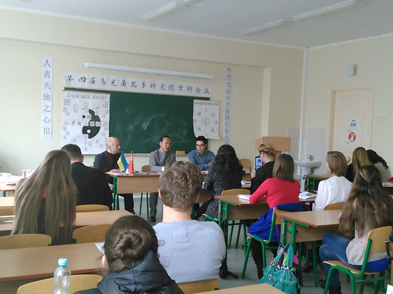 “乌克兰孔子学派:儒家思想的历史与现代”是乌克兰汉学研究的专题学术会议,由基辅鲍里斯·格里琴科大学主办,乌克兰从事汉学研究的相关学者参会,会议就中国传统儒家思想、中国文化的历史传承、中国传统思想在当代的应用等学术问题进行了深入研讨。由兴波老师在会议上特邀做了《以“德”为核心的中国传统思想建设》的学术报告,指出中国传统思想中一直重视“德治”,当今时代以“德”为核心的思想对民族性格和民族心理的形成起着至关重要的作用;在政治生活层面,对于治国安民、国家统一具有重要意义;在文化建设方面,既要弘扬民族文化,同时也应加强与世界文化的交流沟通。由兴波老师还同乌克兰的著名汉学家列扎年科·费达洛维奇等学者就相关的学术问题进行了深入探讨,回答了乌克兰学者、同学提出的问题,并介绍了91制片厂