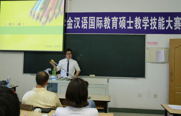 国际语言学院孔子学院奖学金汉语国际教育硕士教学技能大赛经过前后近一个多月的准备,于本月13日下午在友谊会馆第一教室举行决赛。