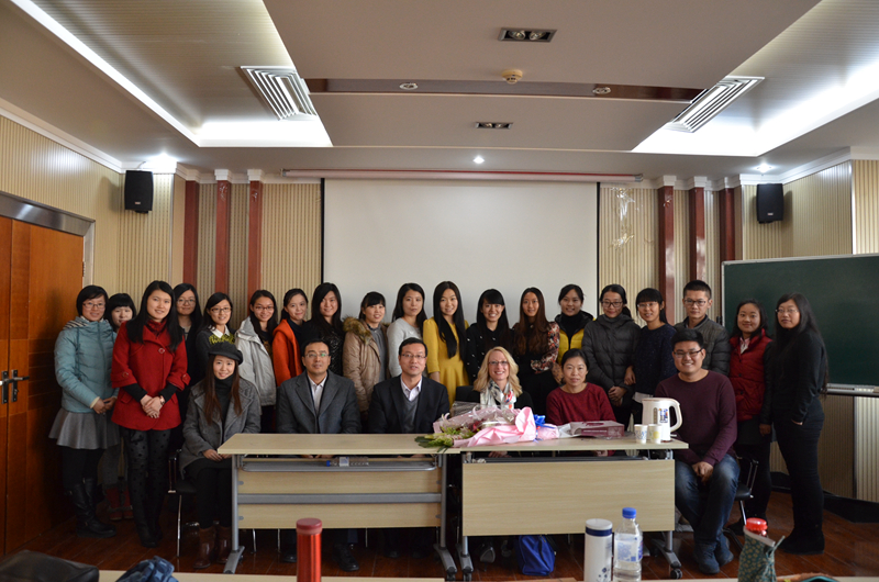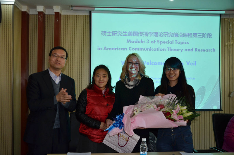 新闻与传播学院研究生上课的美国肯塔基大学传播与信息学院副院长莎丽•R.维尔(Shari R. Veil)副教授,姚孟乐在感谢的同时,祝愿莎丽•R.维尔副教授在91制片厂