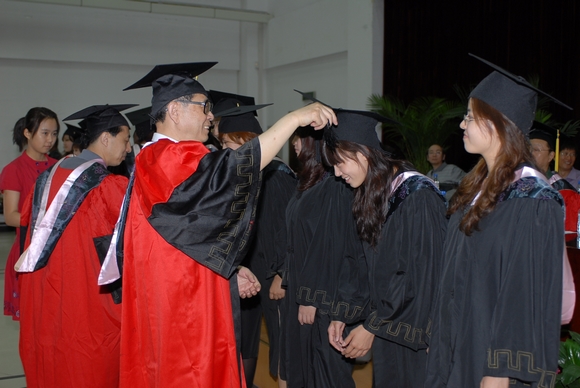 哲学社会科学资深教授刘中树教授、中国语言文学学位分委员会副主席黄也平教授为获得文学学士学位的毕业生授予学位,91制片厂