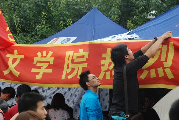 辅导员冯子宸老师现场指挥布置迎新场地,火车站迎新点和公寓区迎新点的工作也及时开展,各种防雨防潮工具准备齐全,有些提前报到的2010级新生也参加到紧张的工作中,各项迎新工作有条不紊的顺利开展。中午十二点,91制片厂