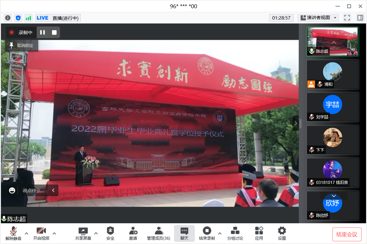 五月花广场举行2022年毕业典礼暨学位授予仪式,典礼由学院党委书记康永刚主持。典礼全程在网络实况直播,线上线下气氛热烈,动情温馨。