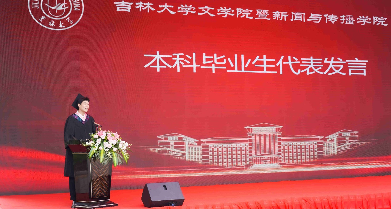 暨新闻与传播学院的求学生涯中,同学们将“求实创新,励志图强”的吉大校训照耀在踔厉奋发的青春底色里,将“又红又专”的吉大精神传承在生生不息的吉人星火中,将“人比山高,脚比路长”的吉大校歌镌刻进赓续前行的成长道路上。此刻,惜别母校,扬帆入海,意气风发、豪情满怀的文传学子正向着未来逐梦奋进,“吉”刻启航!