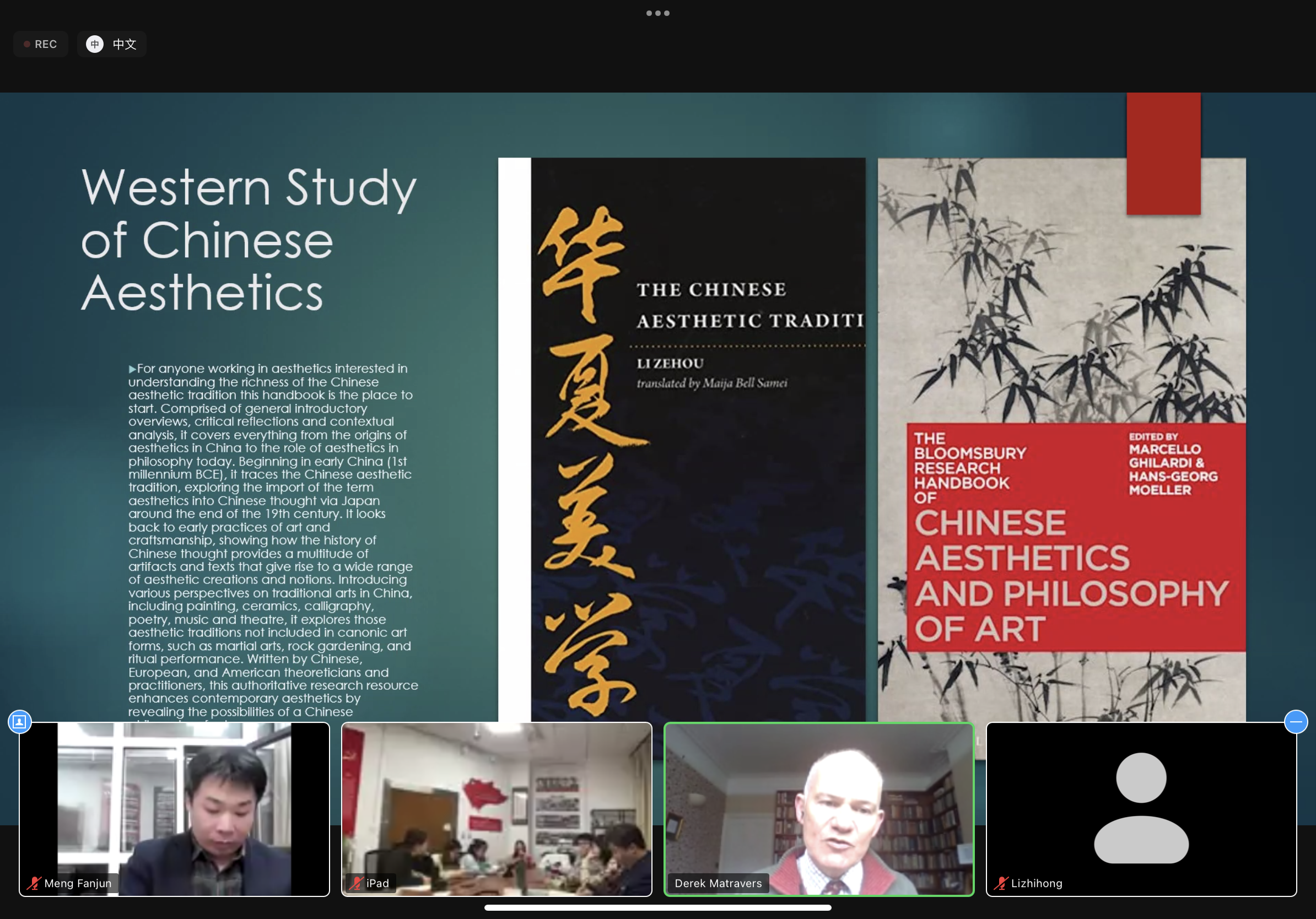 Derek Matervers教授首先从西方哲学“分析哲学”和“大陆哲学”的两个传统引入,回顾了分析美学的近代发展。纵向上,他从分析美学诞生的奠基人G. E. 摩尔到五六十年代战后时期所产生的分化进行了梳理;横向上,从审美判断和批评哲学这两个层面进行了归纳出分析美学的核心议题。其次,Derek Matervers教授按照主题归纳出《英国美学杂志》近年来的发稿的类型,这些为老师和同学们以后的写作或了解分析美学的研究动态非常有帮助。接下来,Derek Matervers教授分享了美学近景中的热点问题:环境美学、文化美学、政治美学和比较美学。最后,Derek Matervers教授为老师和同学们提出了非常重要的论文写作建议,对于中西比较美学方向,以及师生们的日常写作具有重要的借鉴意义。最后,Derek Matervers教授表达了对未来美学发展的光明前景的确信,并期待着日后与91制片厂