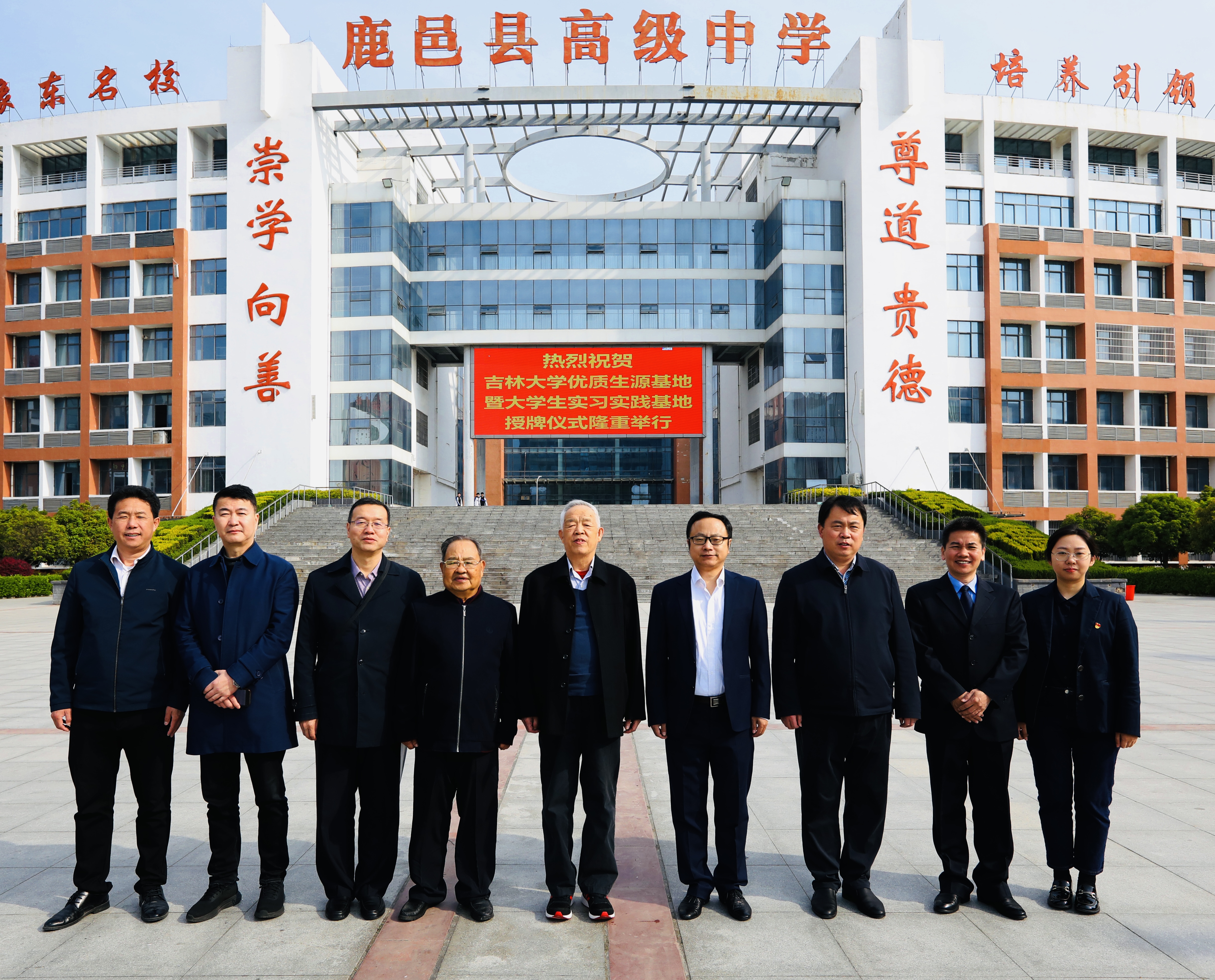 杨一博一行在鹿邑县高级中学合影。