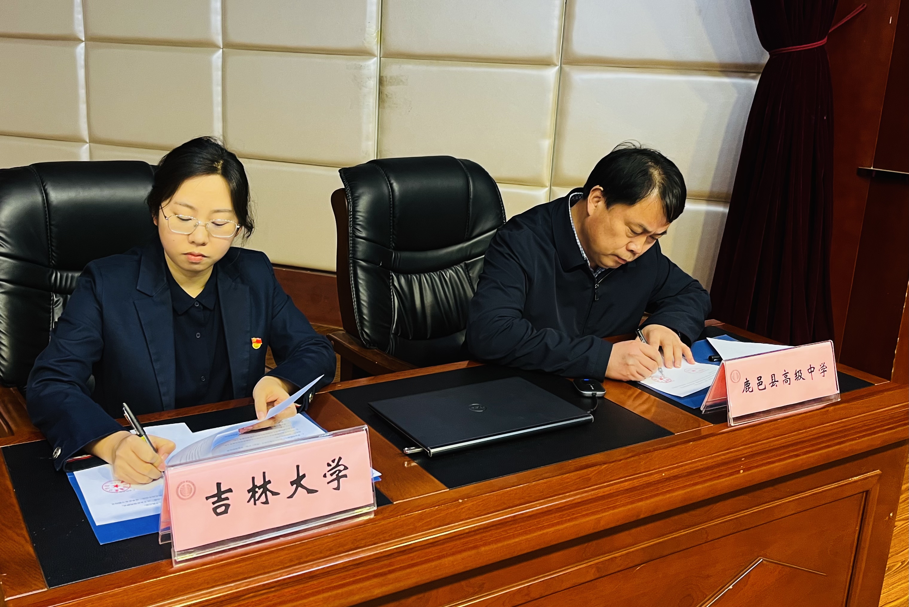 党委副书记杨一博老师与鹿邑县高级中学校长高光乾老师签定了合作协议。