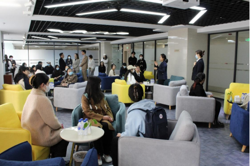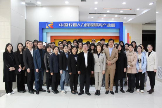 师生一行的来访表示了热烈的欢迎。长发人力资源公司工作人员带领师生队伍陆续参观了产业园一层展厅长廊、园区智能招聘大厅、长春市人才档案库、国家级人力资源特色服务出口基地专区及公共空间等。参观过程中,师生们了解到中国长春人力资源服务产业园于2017年经人社部批准成立,是全国第九家、东北首家国家级人力资源服务产业园。以“人才集聚高地、产业升级引擎”为核心理念,在推进产业集聚发展、促进就业创业、引进各类人才、助力脱贫攻坚、带动地方经济、服务国家战略等方面取得了显著成效。