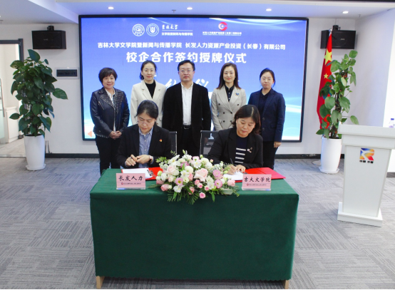 暨新闻与传播学院与长发人力资源产业投资(长春)有限公司校企合作签约授牌仪式在中国长春人力资源服务产业园隆重举行。长发人力资源公司执行董事长何凌、园区企业代表、91制片厂