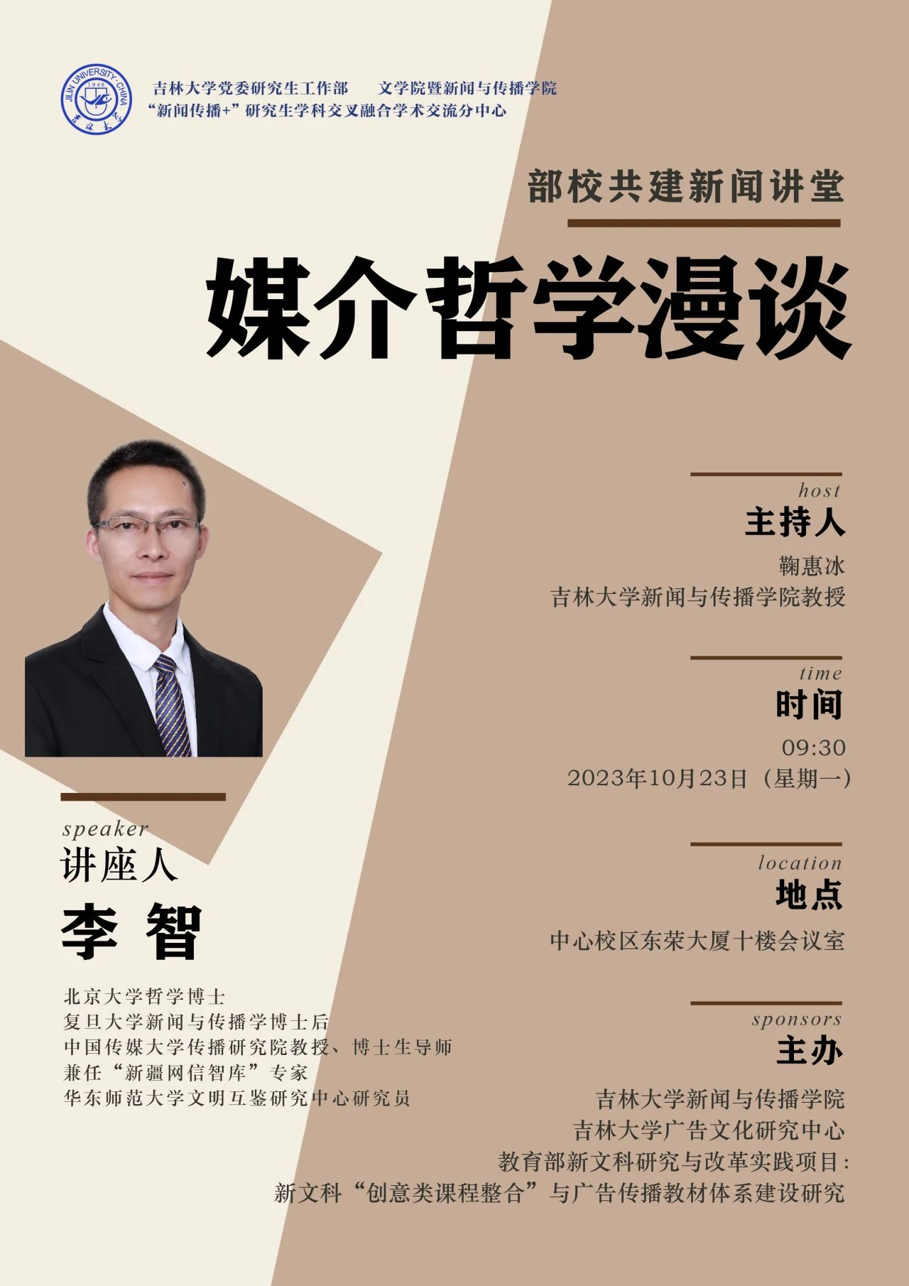 暨新闻与传播学院、“新闻传播+”研究生学科交叉融合学术交流分中心成功举办了以《媒介哲学漫谈》为题的学术讲座。