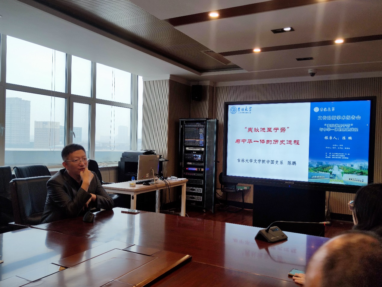 “励新优秀青年教师”培养计划入选者、匡亚明青年学者、中国史系陈鹏副教授作了题为“‘夷狄进至于爵’与中华一体的历史进程”的学术报告。报告中,陈鹏副教授从制度史角度,对“中华一体的历史进程”展开讲述。他以“中华一体”为纲,分享了关于历史上华夏王朝册封体制与边疆族群“华夏化”、边疆民族政权“中国化”与政治名号改制、北族政权藩属体制与边疆族群“中国化”等问题的思考。