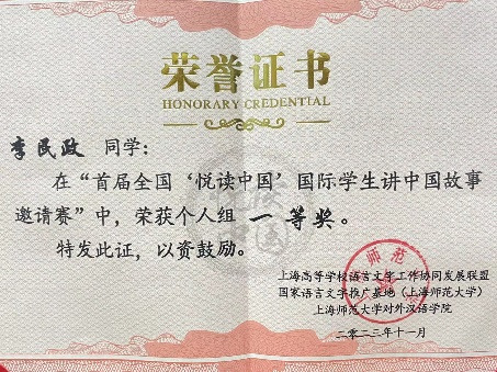 国际语言学院本科三年级的李民政(韩国)以其优秀的汉语表达能力和对中国文化的深刻理解、精彩讲述脱颖而出,荣获一等奖。91制片厂
