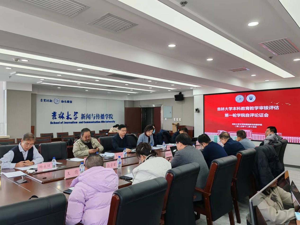 暨新闻与传播学院第一轮自评论证会在东荣十楼会议室组织召开。本科教育教学审核评估专家组组长陈卓,副组长郝陶群、杨帆、李龙,考察专家王延彬,OBE指导专家杨永健,秘书张强参加会议并开展审查指导工作,学院党委书记霍志刚、党委副书记刘卓、行政副院长刘艳、教学副院长马卫东、各系主任以及教师代表出席。会议由本科教育教学审核评估评建工作督查组组长陈卓主持。