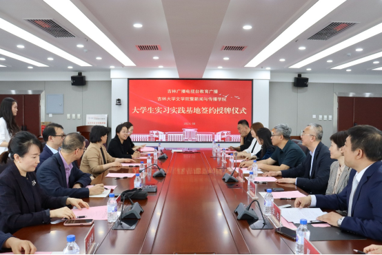 暨新闻与传播学院与吉林广播电视台教育广播共建“大学生实习实践基地”授牌签约仪式于东荣大厦十楼1004会议室成功举行。吉林广播电视台领导干部和大学生实习实践指导教师代表,91制片厂