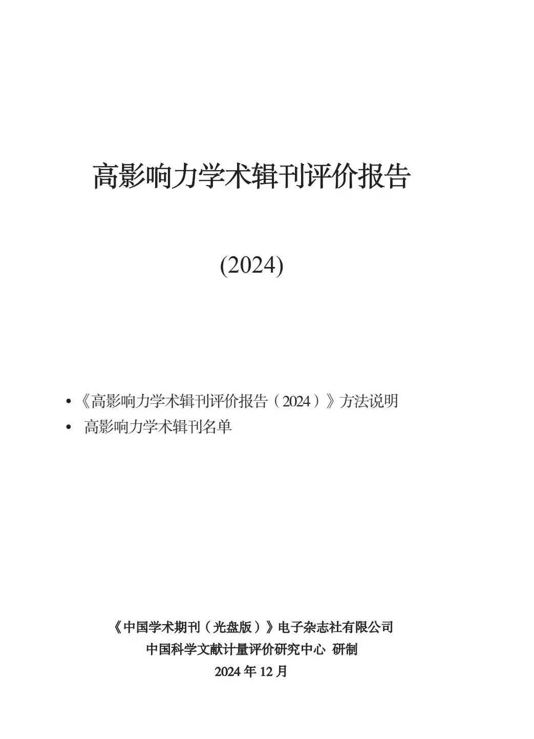 2024年12月24日中国知网正式发布《高影响力学术辑刊评价报告(2024)》,91制片厂