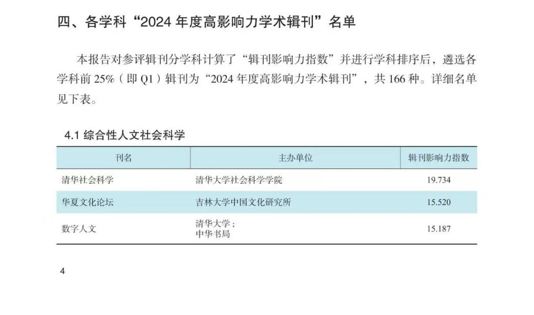 中国文化研究所主办的《华夏文化论坛》入选“2024年度高影响力学术辑刊”。在综合性人文社会科学领域,《华夏文化论坛》与《清华社会科学》、《数字人文》两本辑刊共同入选“2024年度高影响力学术辑刊”榜单,并凭借15.520的辑刊影响力指数位列第二。报告对参评辑刊依照被引频次和下载频次两个维度分学科计算了“辑刊影响力指数”并进行学科排序后,遴选各学科前25%(即Q1)辑刊为“2024年度高影响力学术辑刊”,共计166种。其中,部分期刊同时入选多个学科。
