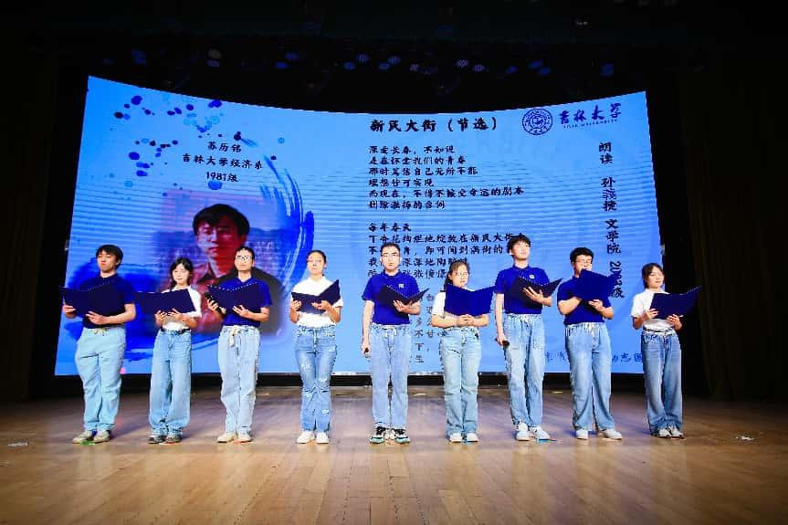 朔风文学社与荒岛诗社的同学们联袂献上的吉大诗人作品联诵,通过“诗群崛起”“异彩纷呈”“萌发新芽”三个篇章,串联起32位吉大诗人的创作。年轻的声音读出那些永远年轻的诗句,仿若时空交错,青春与诗歌汇聚成澎湃的涛声。朔风文学社当年正是在公木先生亲自关怀与支持下创办的,而荒岛诗社则与赤子心诗社、北极星诗社一脉相承,因此,这场诗会堪称吉大诗脉乃至吉大文脉的一次历史性展现。这两家学生社团也是本届吉大文学周的协办方。