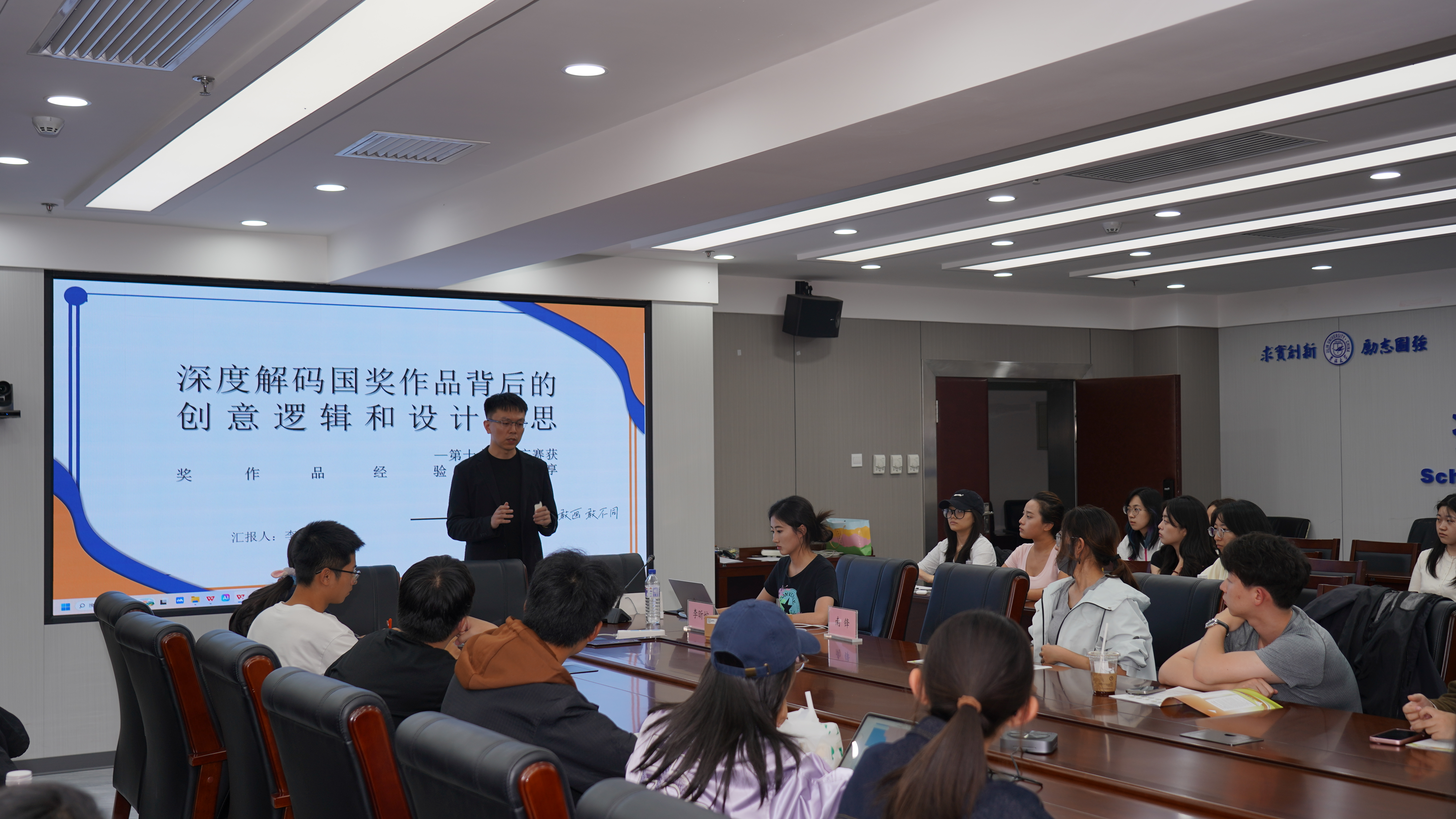 分享会以南锋老师对全国大学生广告艺术大赛(大广赛)的赛制规则与评审标准的专业解读开场。他指出,大广赛作品需同时具备策略性、创意性与执行力,是检验学生综合实践能力的重要平台。随后,分享聚焦第十七届大广赛国家级获奖作品《甲骨新语》的创作路径,展开系统梳理与案例剖析。
