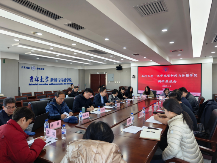 暨新闻与传播学院将以此为契机,积极做好盘家底、数家珍的工作,查不足、补短板、扬优势、做特色,加强教研顶层设计,夯实基础,突出特色,努力建设具有吉大标识的系列规划教材,鼓励、推动教师围绕教研工作,总结经验、探索规律,形成具有推广价值与影响力的教学成果,并发挥其示范辐射作用,促进青年教师成长,形成后继有人的迭代效应。在交流环节,学院教师围绕课程建设、教材开发与教学成果申报等议题踊跃提问、交流。本科生院逐一予以细致解答,双方还就学院申报的通识核心课程进行了深入研讨,调研座谈会气氛热烈融洽。