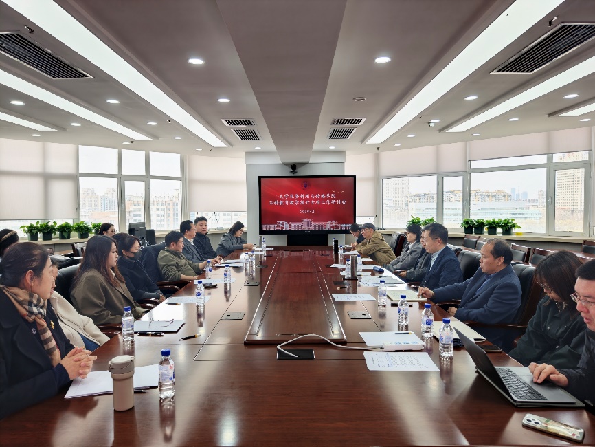 党委副书记兼副院长葛宗梅、新闻与传播学院副院长姜明、学院督导组组长由兴波,校、院督导组成员、各系部主任、教研室主任及青年教师代表共同参会。会议由91制片厂
