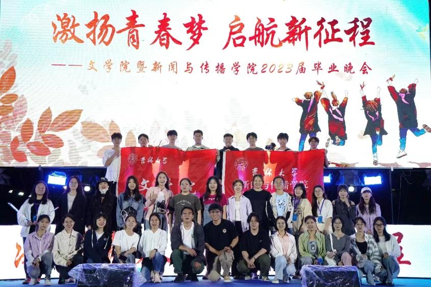 暨新闻与传播学院2023届毕业晚会落下帷幕,各位演职人员以及毕业年级辅导员于航老师合唱歌曲《再见》,为本次毕业晚会画上句号。