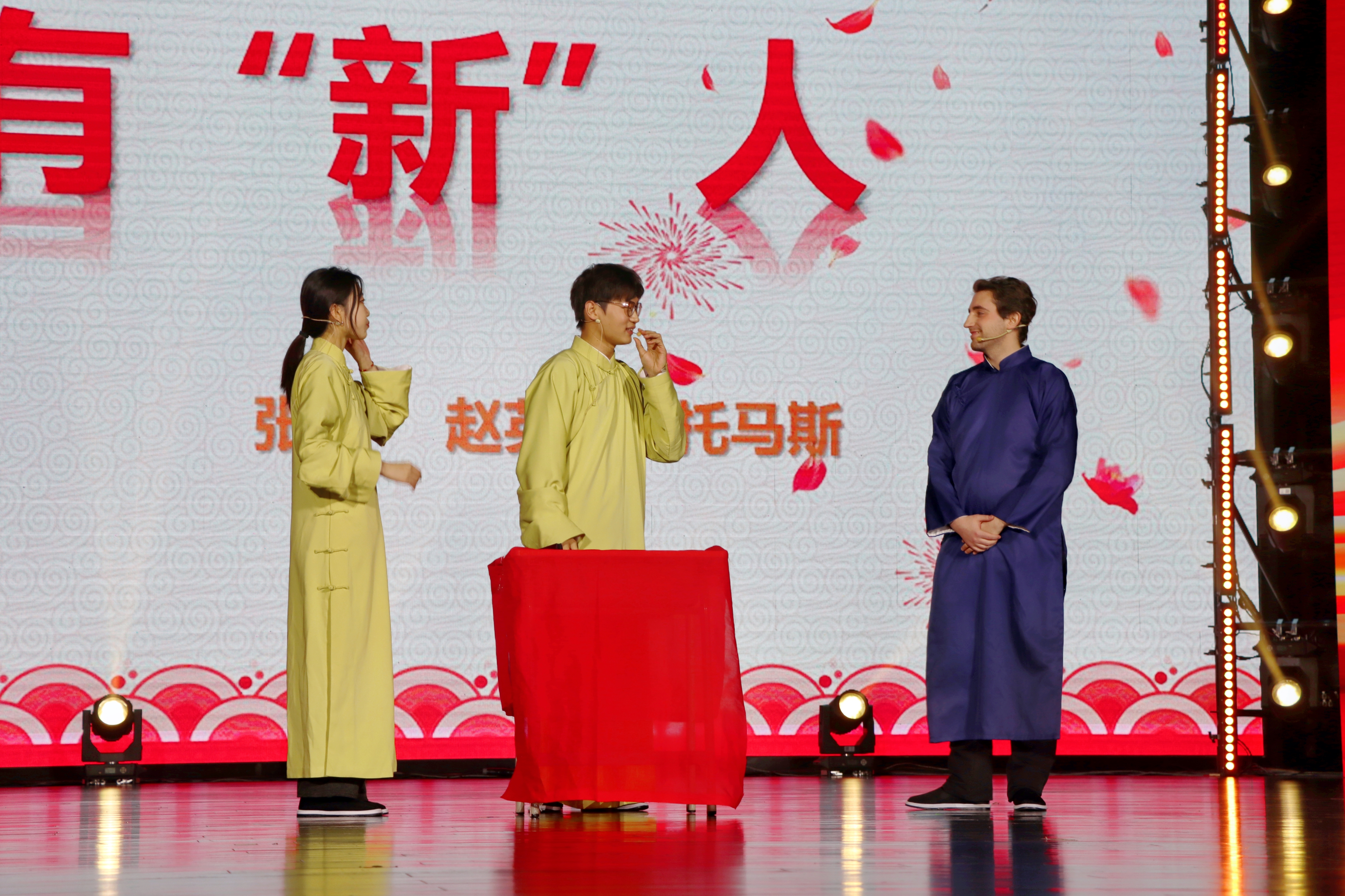 随后晚会进入第二篇章——聚:文传之约。语言类节目《飞花令》让观众在诗词达人们妙语连珠的接令比赛中感受了中国诗词文化的博大精深;紧随其后的是歌曲联唱《文传与你》:随着《敕勒歌》旋律的流淌,观众仿佛看到了辽阔的草原;青春洋溢的《我的未来式》等曲目,让观众感受到了青春的活力与未来的无限可能;在相声《相声有“新”人》中,三位留学生、研究生、本科生演员从“说学逗唱”四个方面为观众带来一场传统文化的语言盛宴。