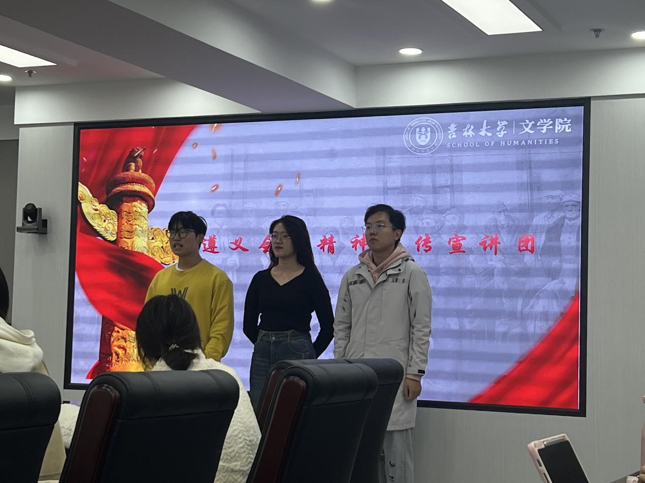 遵义会议精神文传宣讲团的指导教师为学院辅导员王振彰老师、杨佳欣老师,刘晓莉、李乐秒、钱雨曈、刘畅、邵致远、闫梓锋、王翎羽、李星奇、帅子星、曲昭琦组队参与,宣讲辐射到学院所有本科专业。