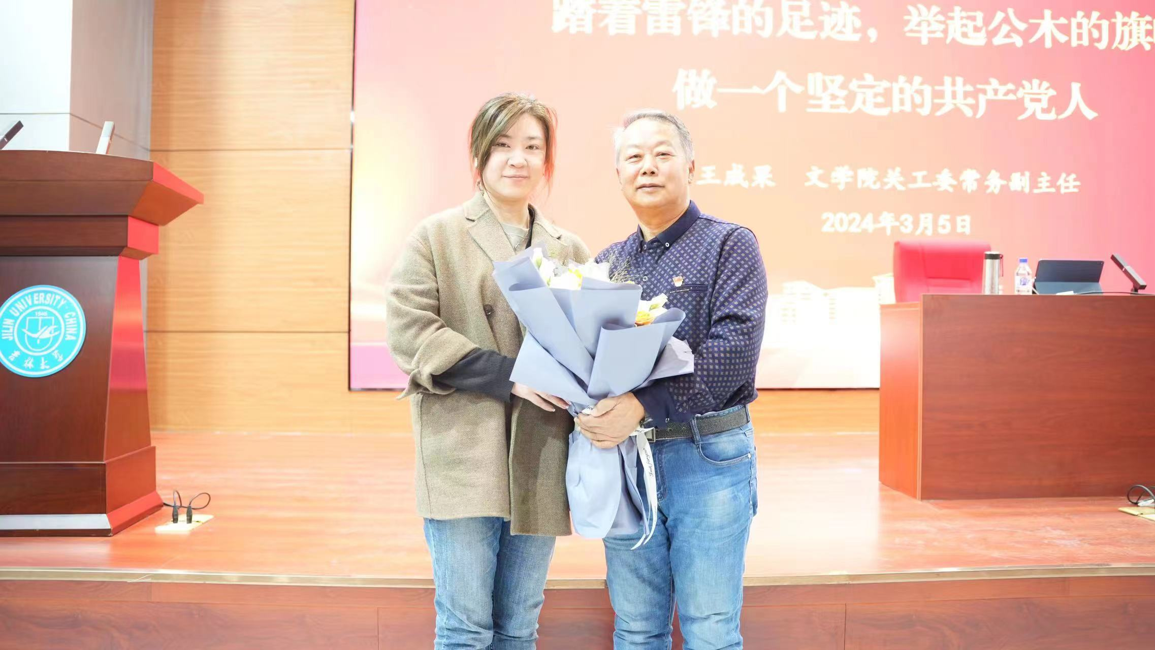 暨新闻与传播学院于3月5日下午13:30在学校国际学术大讲堂开展“踏着雷锋的足迹,举起公木的旗帜,做一个坚定的共产党人”学习雷锋精神专题报告会,邀请学院关工委常务副主任王成果老师作为主讲人。学院党委副书记、纪委书记刘卓老师、学院党委副书记、副院长杨一博老师、学院办公室张谦谦老师、2022级辅导员李芊满老师、2023级辅导员于航老师及部分新生入党申请人、入党积极分子参会。
