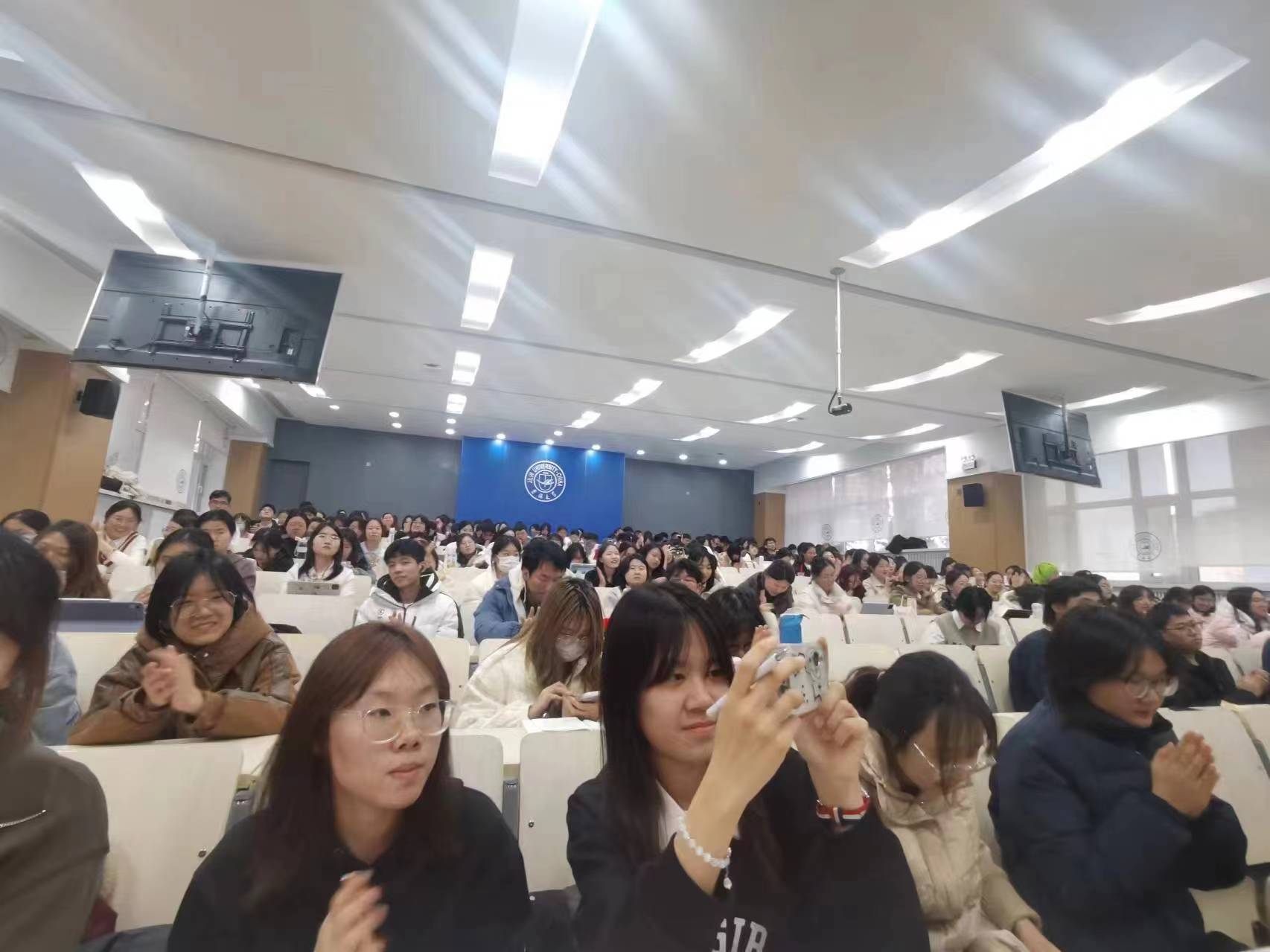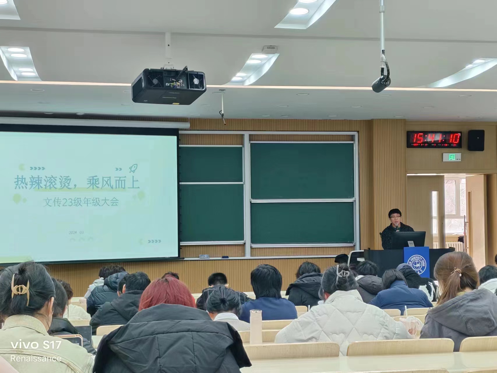 暨新闻与传播学院2023级年级大会暨就业指导课线下课在逸夫七阶召开,主题为热辣滚烫,乘风而上。围绕新学期生活、学习等方面的问题进行同步,以及进行就业方向和如何明确生涯规划的前景指导。由学院2023级辅导员于航老师主讲,年级全体同学参加了此次课程。