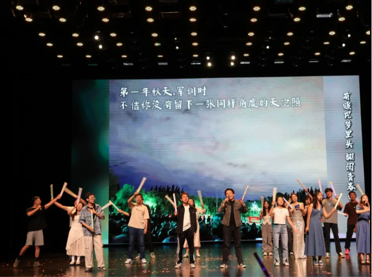 晚会在充满活力的舞蹈中拉开了序幕,同学们随着音乐挥动着手中的毕业晚会纪念文创荧光棒,现场氛围在节奏的律动中全面点燃。