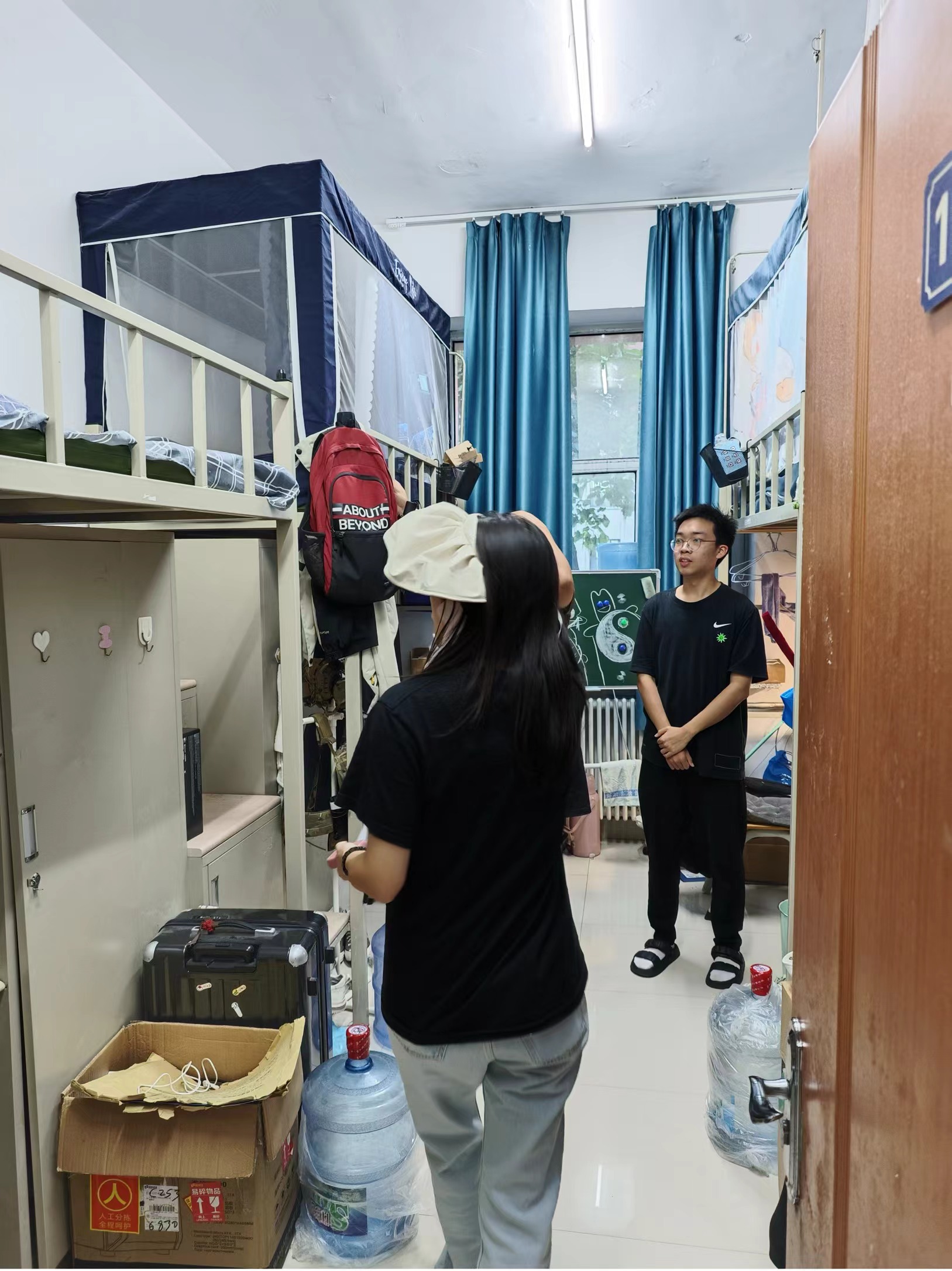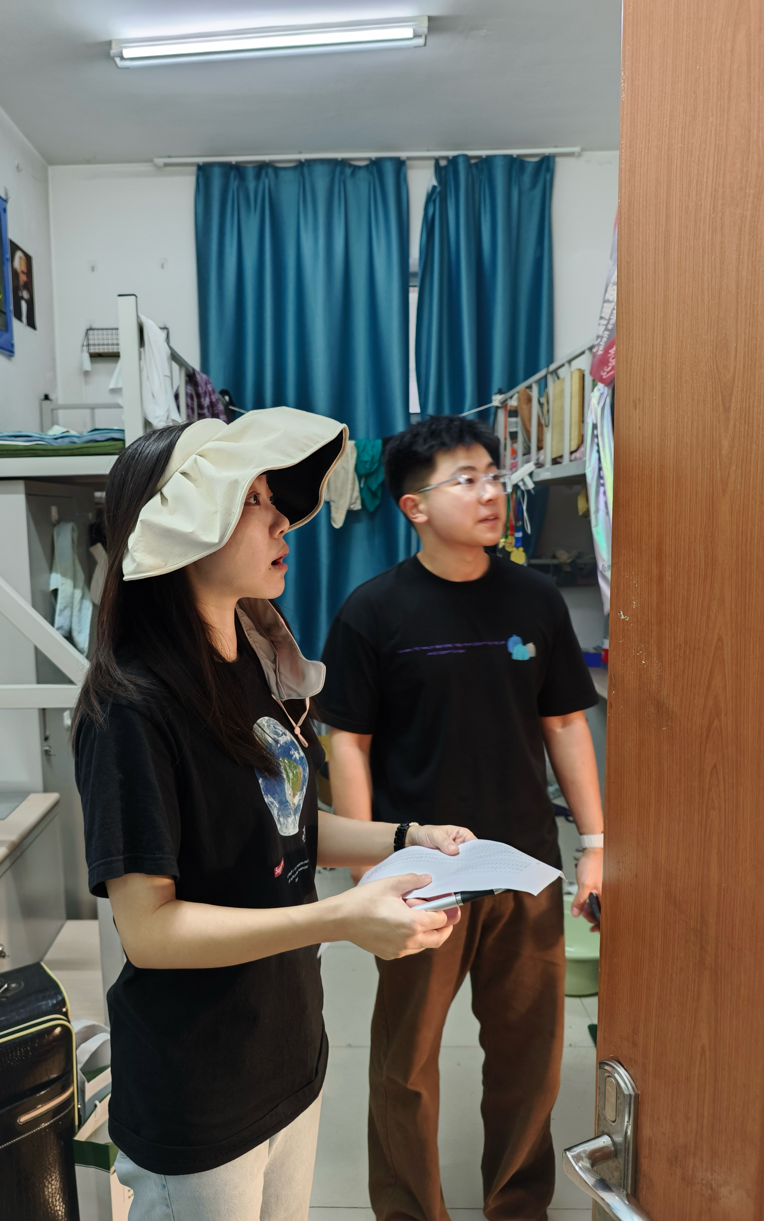 暨新闻与传播学院2022级开展寝室走访工作,学生工作办公室主任、2022级辅导员李芊满,2022级兼职辅导员王振彰深入91制片厂