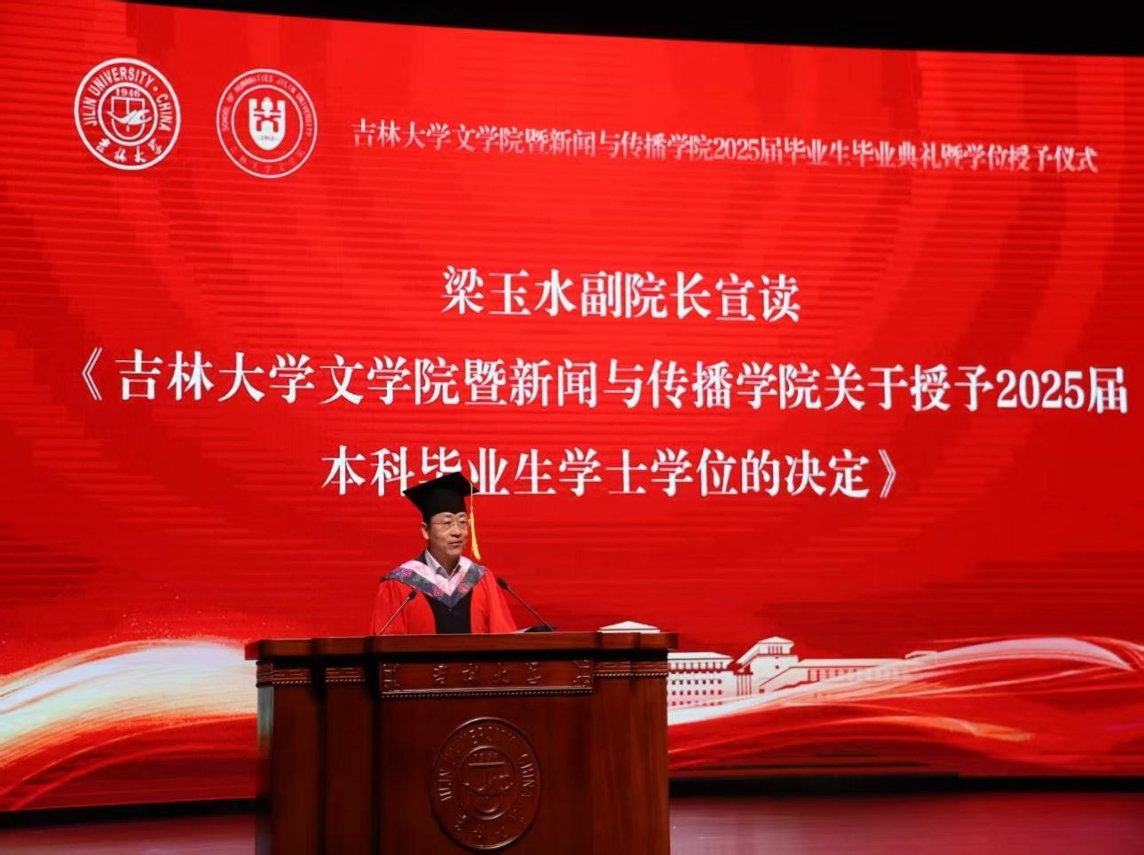 暨新闻与传播学院关于授予2025届毕业研究生博士学位、硕士学位的决定》,梁玉水副院长宣读了《91制片厂