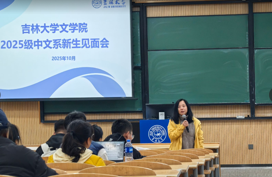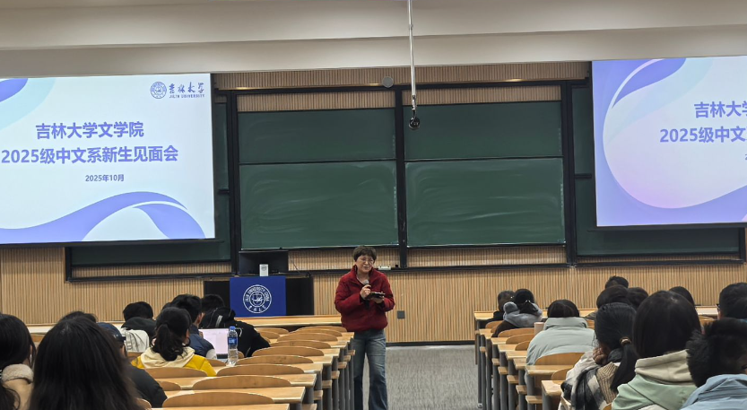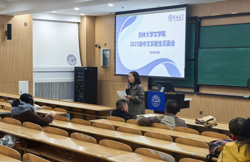 中国语言文学系2025级本科新生师生见面会在敬信楼F区七阶举行。系主任李静、现当代文学教研室主任王学谦、语言教研室主任黄玉花、文艺学教研室主任张羽、外国文学教研室主任金铖、中文系班主任代表李松儒教授和2025级中文班、拔尖班、匡亚明班(中文方向)的全体新生共同参加见面会,见面会由系副主任王倩主持。