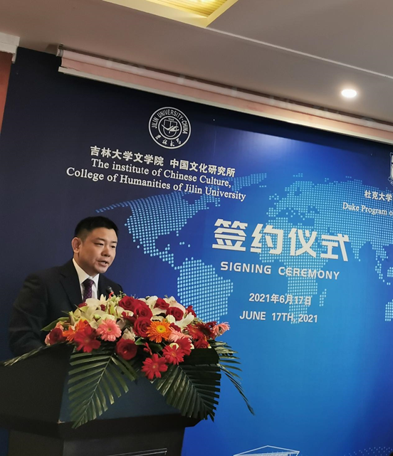 的深厚渊源,深情怀念老校长匡亚明先生,介绍了杜克大学中国研究中心在海外推动中国文化传播与研究的一系列工作。他表示,无论从全球大背景还是从高校内在发展需求来看,双方签约合作都是一次顺应时势顺应民意的合作,双方都深具学者情怀,勇担时代使命,必将有力推动中国文化研究,展示中国形象,也希望本次签约能够推动双方实质性合作落地落实,开花结果,成为在全球讲好中国故事的重要合作平台。