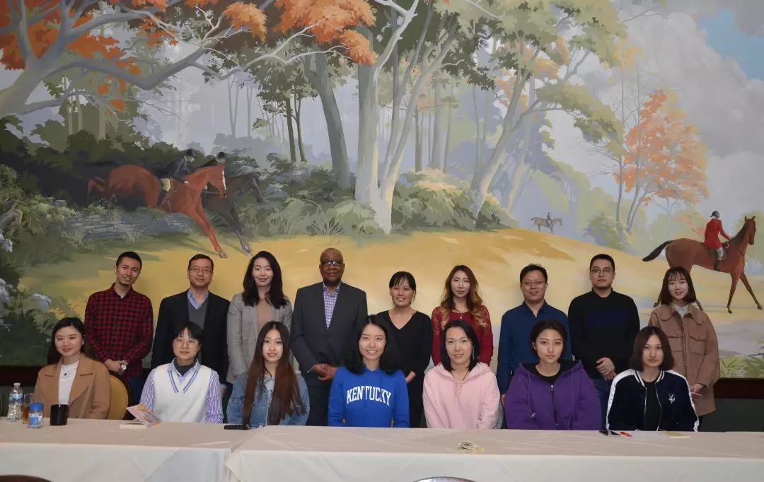 肯塔基大学传播与信息学院整合策略传播系主任希克·安尼耶巴纳曼(Chike Anyaegbunam)教授(后排左四),助理教授、本科项目负责人Hyun Ju Jeong(后排左五)同吉大师生合影