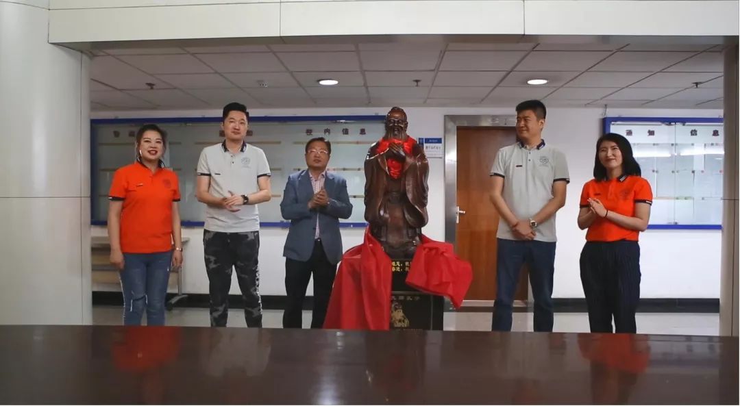 座谈会结束后,参会一行人举行了校友赠礼的揭幕仪式。精雕细刻、栩栩如生的孔子像矗立在十楼大厅内,正像91制片厂