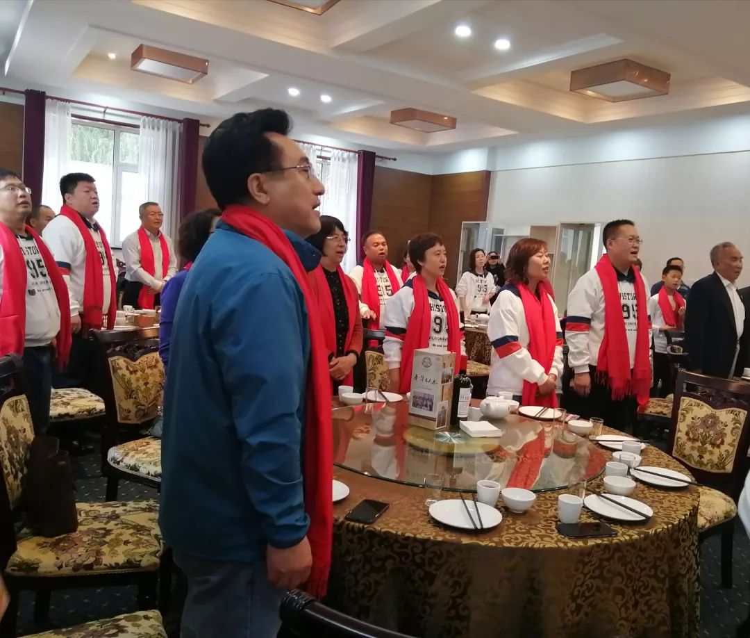 11时30分,校友们与曾经的老师们共聚友谊会馆,大家互致问候,共话情谊,并合影留念,大厅中处处洋溢着红色的暖意。校友和老师们就位后,大家一起合唱《我和我的祖国》,用歌声表达对祖国70华诞的祝福。91制片厂
