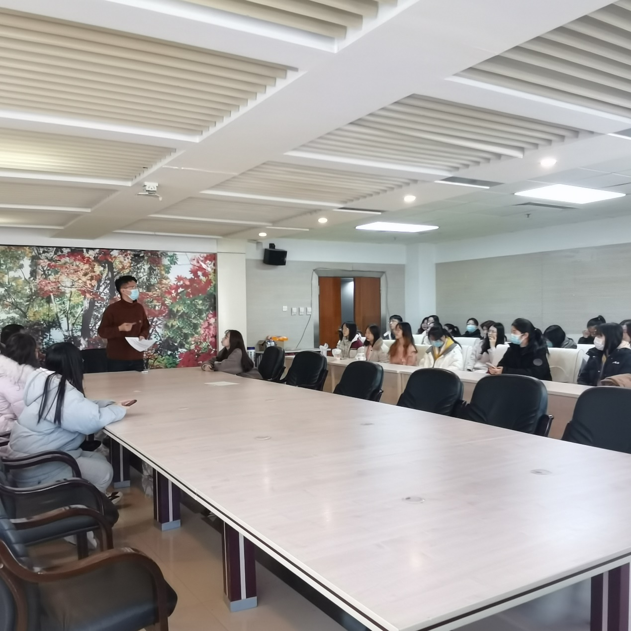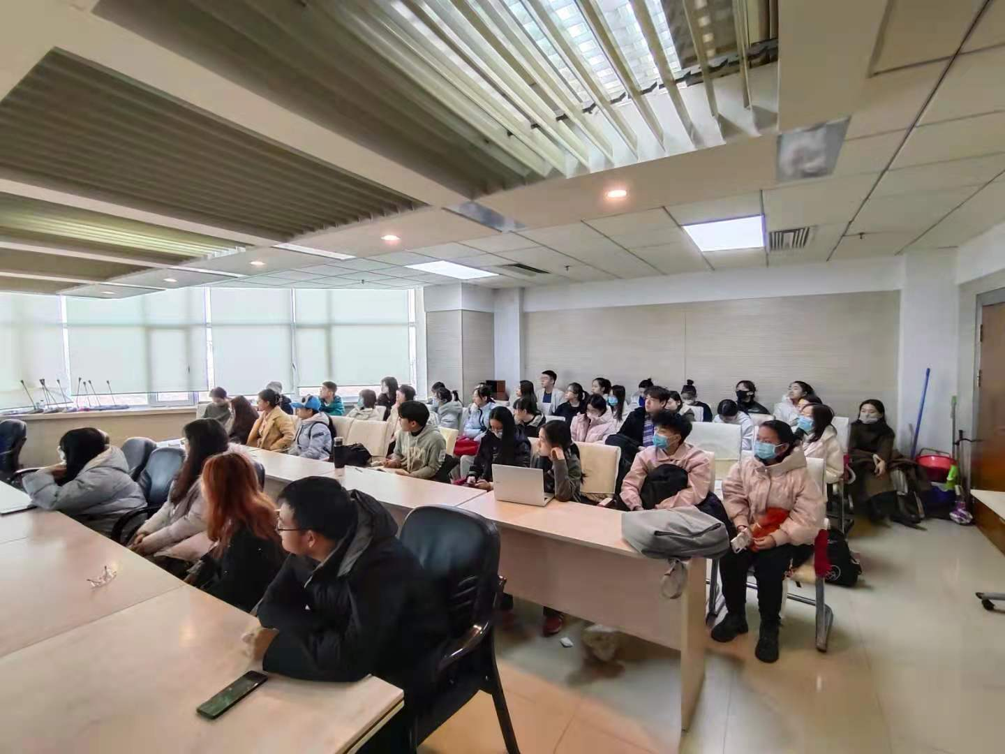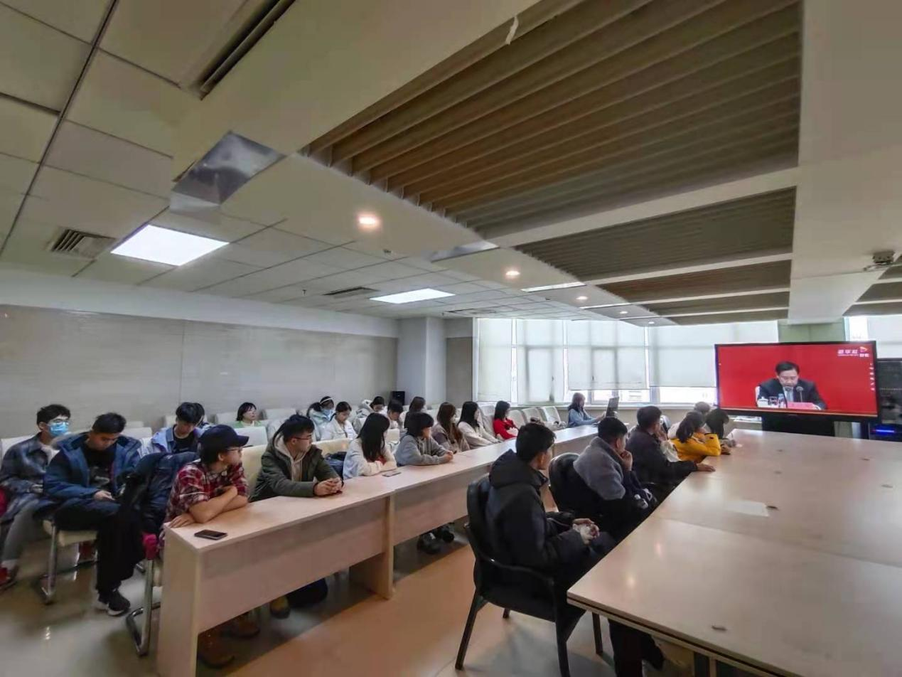 课堂教学培训分为两场进行,团委负责人于航老师带领同学们集体观看了“十九届六中全会新闻发布会”。在新闻发布会上,中央宣传部分管日常工作的副部长王晓晖,中央政策研究室主任江金权,中央财经委员会办公室分管日常工作的副主任韩文秀,中央党史和文献研究院院长曲青山介绍党的十九届六中全会精神,并围绕全会的重要成果进行权威解答。观看后,于航老师强调了十九届六中全会关乎每一位同学,要更加自觉地增强“四个意识”、坚定“四个自信”、做到“两个维护”,履行青年应尽的责任和义务。同学们在观看后围绕"十九届六中全会精神"的内容记录笔记、展开讨论。