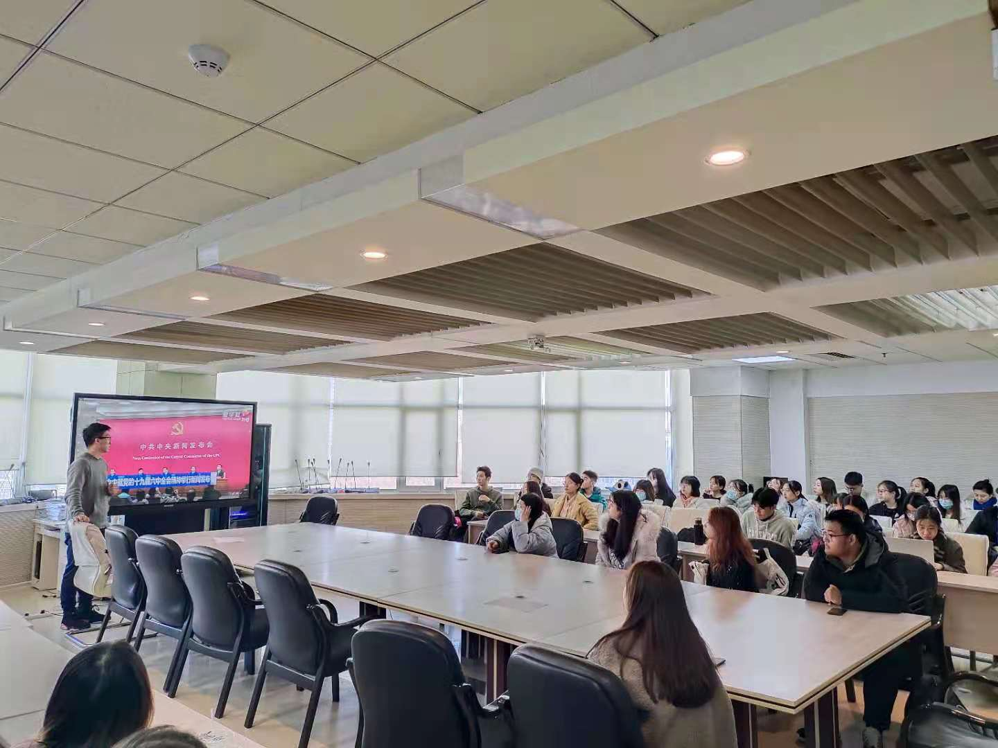 暨新闻与传播学院组织新推优的110名入党积极分子集体学习十九届六中全会精神,同时聆听院党委书记讲党课,完成学院入党积极分子课堂教学培训内容。